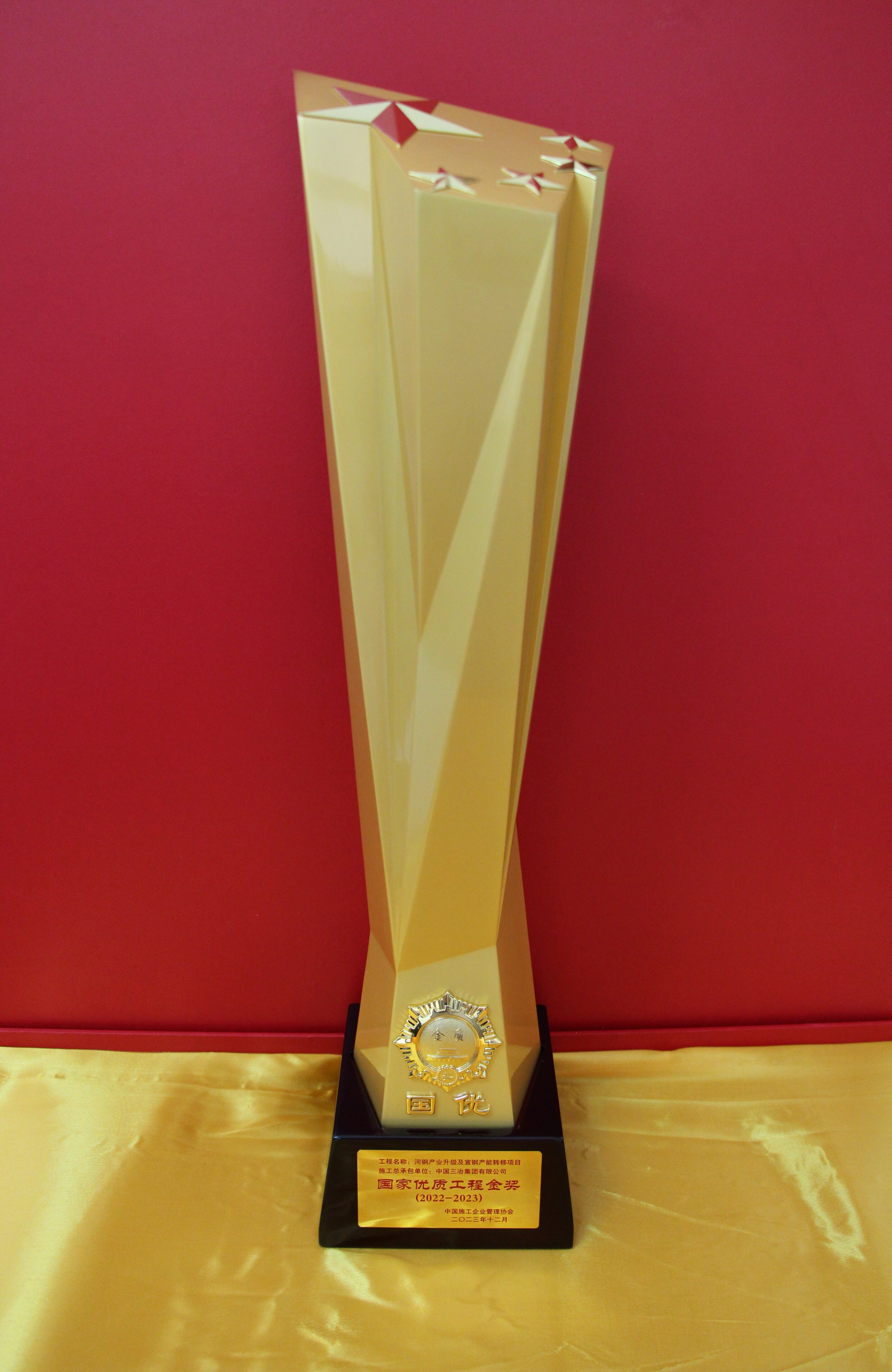 12月25日,工業工程捧得獎牌、獎杯——由該公司承建的河鋼產業升級及宣鋼產能轉移項目,憑借卓越的施工管理、工程質量、科技成果及項目履約能力,被中國施工企業管理協會授予“2022-2023年度國家優質工程金獎”。